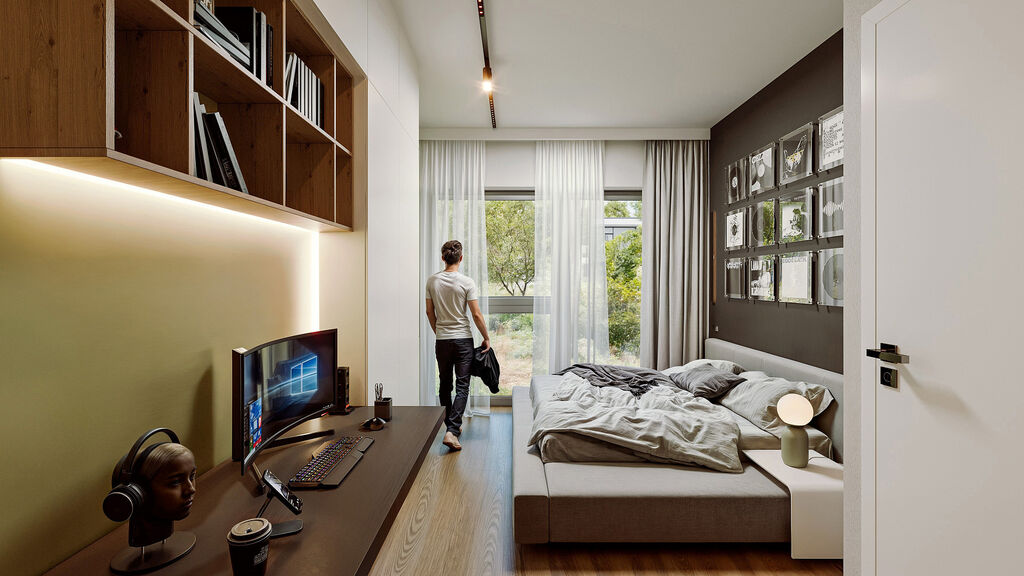 • Hliníková trojskla, venkovní elektrické žaluzie ovládané přes mobilní aplikaci
