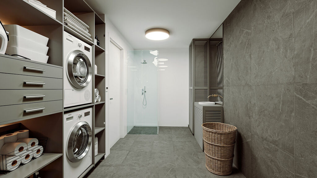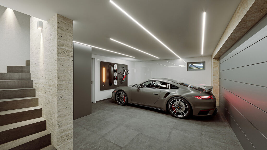 • Osvětlené podhledy a designové osvětlení v koupelnách a garáži