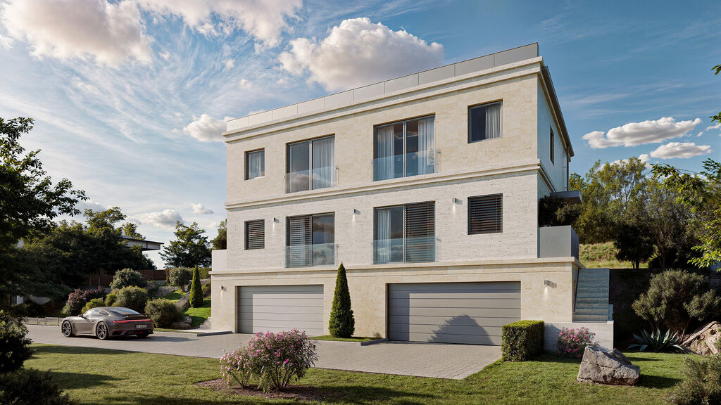 Nabízíme k prodeji nadstandardní novostavbu s dispozicí 5+kk, užitnou plochou 176 m², terasou 25 m² a soukromou zahradou o velikosti 297 m². Vila spojuje moderní architekturu s duší italského stylu. Fasáda z pravého travertinu, dovezeného přímo z Itálie, působí jako elegantní šperk celého domu, který dokonale doplňuje designové venkovní osvětlení fasády a okolí. Večerní iluminace zvýrazňuje architektonické linie, umocňuje atmosféru celého prostoru a dodává vile výjimečný charakter. Luxusní materiály, dokonalé detaily a promyšlené dispozice vytvářejí prostředí, kde se snoubí design, komfort a rodinná pohoda.