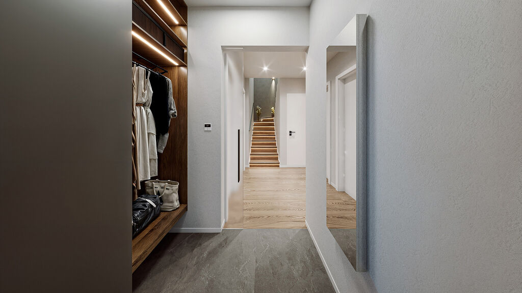 • Reprezentativní vstupní hala s místem pro vestavěné skříně