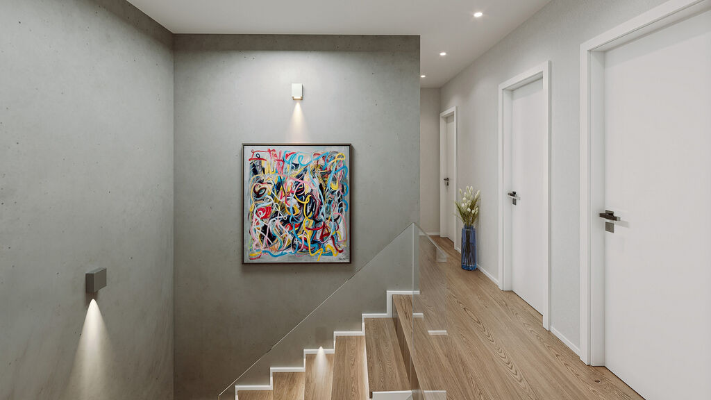 • Osvětlené podhledy a designové osvětlení v koupelnách a garáži