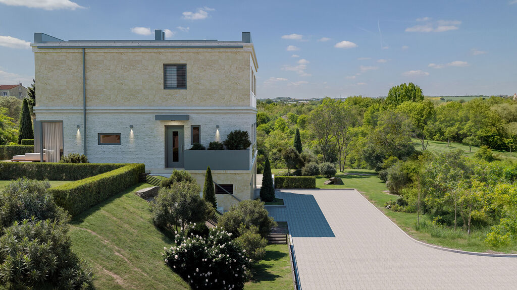 Nabízíme k prodeji nadstandardní novostavbu s dispozicí 5+kk, užitnou plochou 176 m², terasou 25 m² a soukromou zahradou o velikosti 297 m². Vila spojuje moderní architekturu s duší italského stylu. Fasáda z pravého travertinu, dovezeného přímo z Itálie, působí jako elegantní šperk celého domu, který dokonale doplňuje designové venkovní osvětlení fasády a okolí. Večerní iluminace zvýrazňuje architektonické linie, umocňuje atmosféru celého prostoru a dodává vile výjimečný charakter. Luxusní materiály, dokonalé detaily a promyšlené dispozice vytvářejí prostředí, kde se snoubí design, komfort a rodinná pohoda.