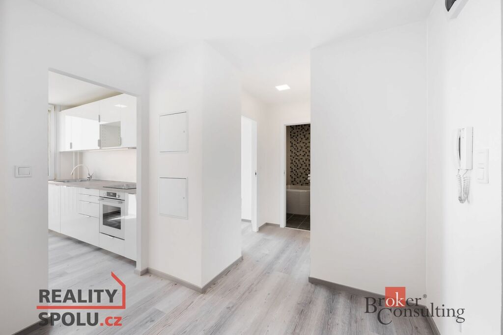 Byt je po kompletní rekonstrukci – byly použity kvalitní a nadstandardní materiály, jako jsou např. vinylové podlahy, bezfalcové interiérové dveře a sanitární zařízení. Nové jsou samozřejmě také veškeré rozvody vody a elektřiny. Součástí nájmu je vybavení bytu tak, jak je zachyceno na fotografiích, tedy plnohodnotná, ještě nikým nepoužitá kuchyňská linka s horkovzdušnou troubou a indukční varnou deskou. V předsíni bude ještě zhotovena vestavná skříň s úložnými prostory na míru.