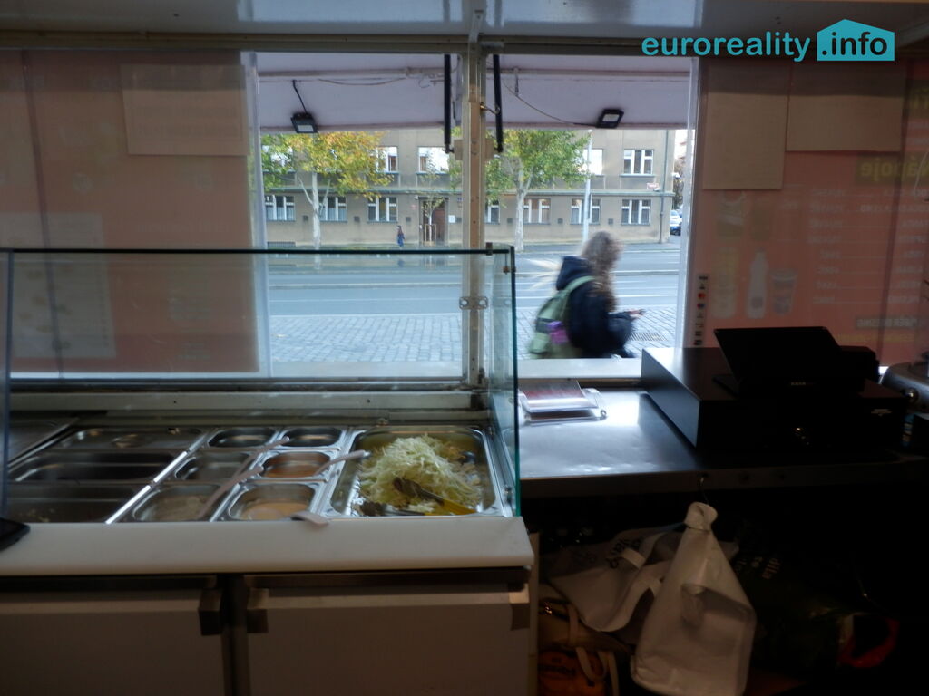 Stánek se k pronájmu nabízí částečně vybavený 2x lednicí, digestoří, nerez umývadlem s průtokovým ohřívačem vody, nerez stoly a policemi.