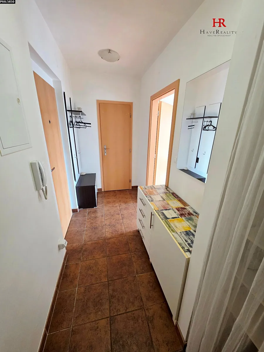 Byt je kompletně vybavený – v kuchyni nechybí spotřebiče, nábytek ani drobné vybavení.