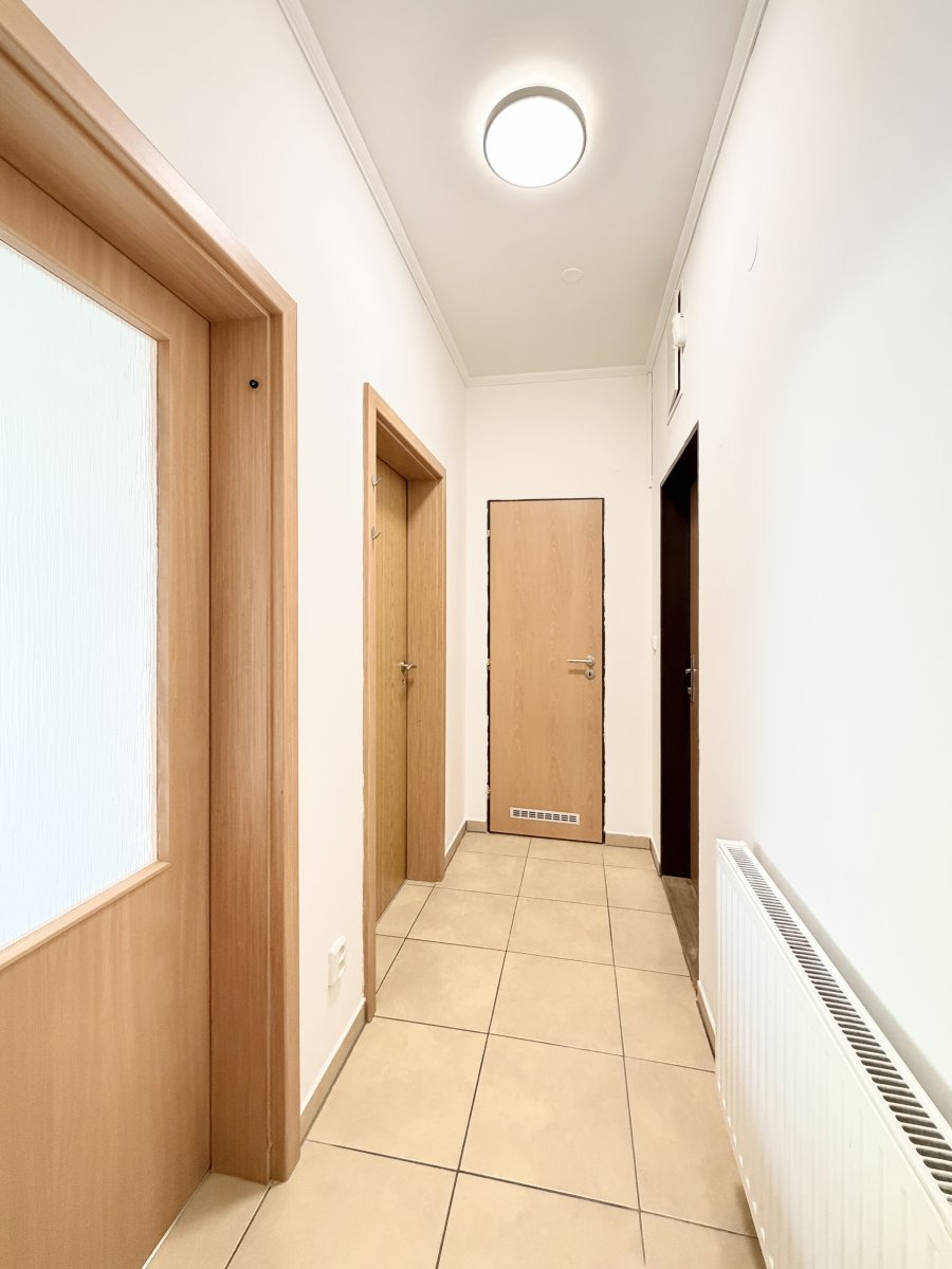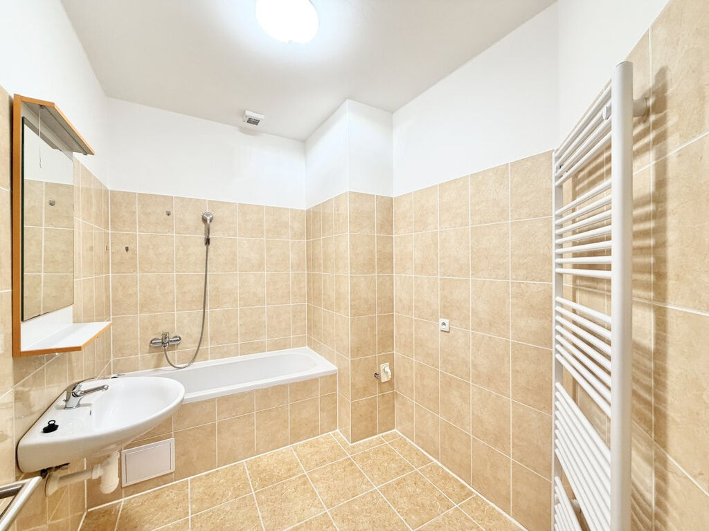 Byt se nabízí částečně vybavený. Kuchyně disponuje myčkou, elektrickou troubou, varnou deskou a digestoří. Obývací část a druhý pokoj jsou bez vybavení. V koupelně je vana, topný žebříček a umyvadlo. Toaleta je umístěna samostatně.