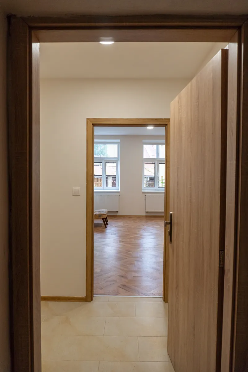 Nabízíme k pronájmu bytovou jednotku v centru Jihlavy, na adrese Brněnská 598, Jihlava. Bytový dům je nedaleko náměstí v úplném centru města. Byt je řešen jako 2+kk, přízemní o výměře 53,4 m2 s výhledem na společný travnatý dvůr. Byt je po kompletní rekonstrukci, vč. nové koupelny, kuchyně i topení na plyn. Jde o příjemné bydlení pro ty, kteří to chtějí mít všude blízko a využít komfortu krajského města. Součástí bytu je kuchyně vč. nové lednice a myčky, nová pračka, dvě samostatné postele, skříňky a malá sedačka v obývacím pokoji. Měsíční náklady na energie a služby činí odhadem 3500,-Kč. Kauce jeden měsíční nájem, a dále provize RK ve výši jednoho měsíčního nájmu. Pronajímatel předem informuje, že nájemce nemůže být osobou s exekucemi či v insolvenci. Vhodné pro osoby hledající bezbariérové bydlení.