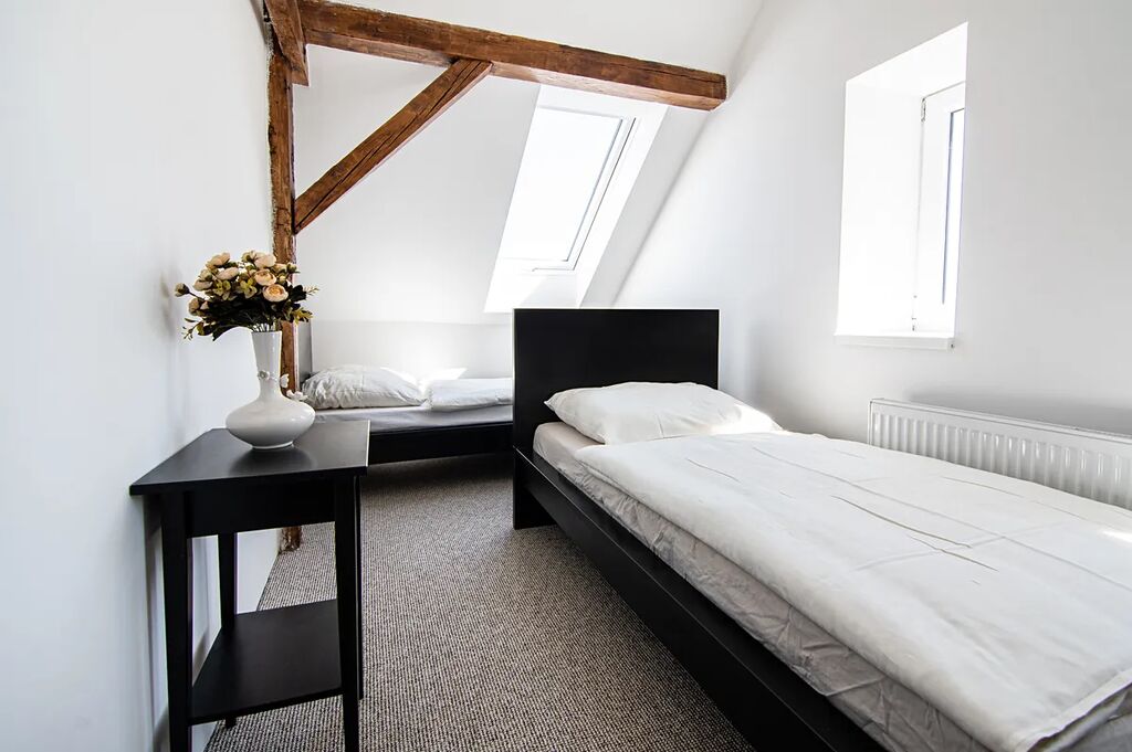 V hlavní budově se nachází ubytovací zařízení s celkovou obytnou plochou 198 m², které nabízí 7 komfortních pokojů s vlastním sociálním zařízením. Maximální kapacita ubytování je 16 osob.