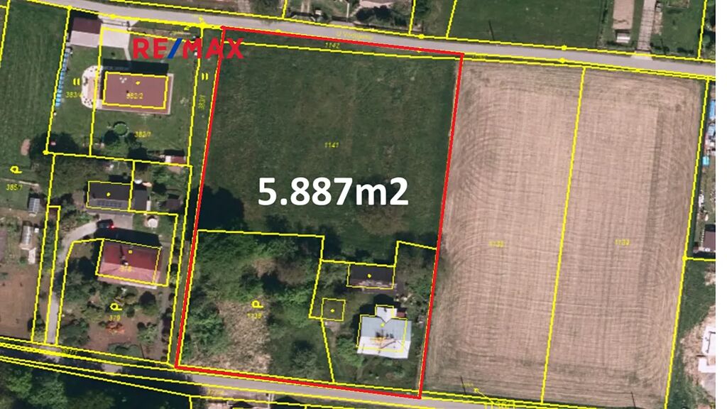 Jedná se o soubor pozemků o celkové výměře 5887m², sestávající z uvedených pozemků: