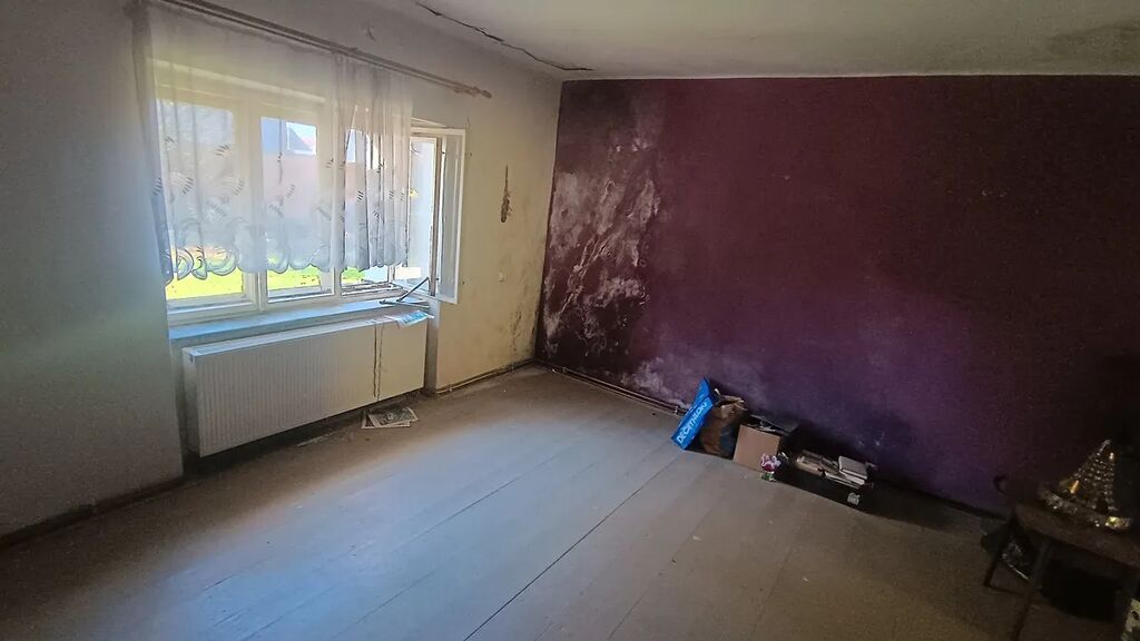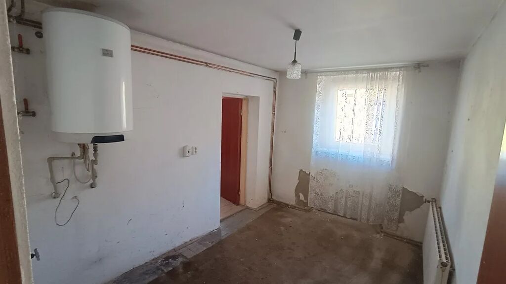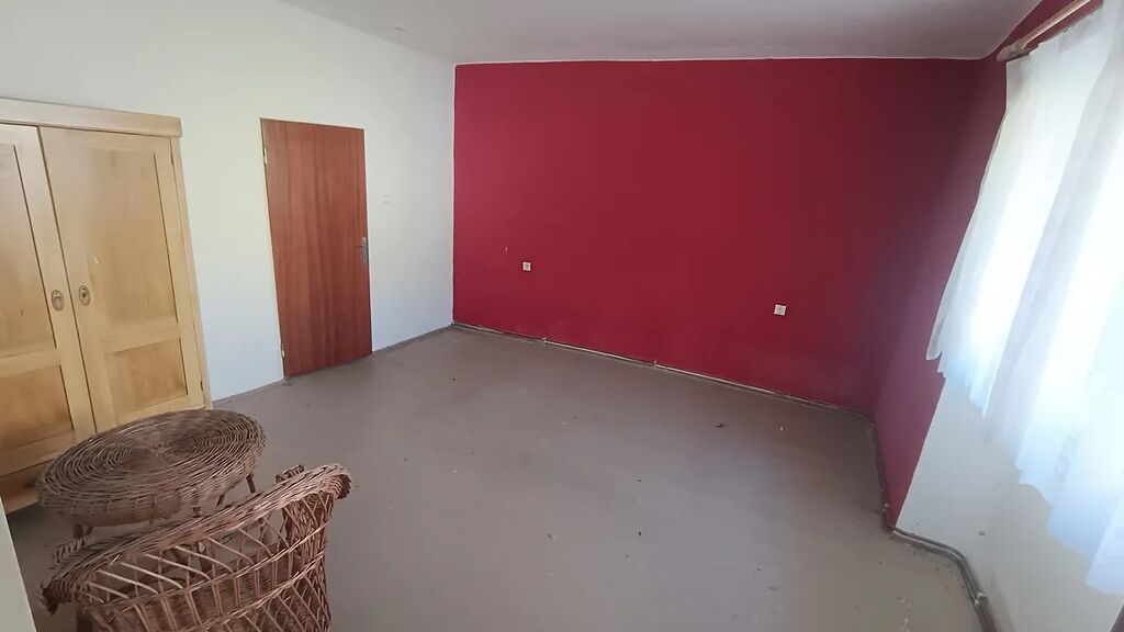 První dům je dispozičně řešen jako 4+1, dřevěné podlahy a v jedné místnosti podlaha vybetonovaná. Rozvody topení zde v mědi, odpad v plastu. Vytápění zajišťuje kotel na tuhá paliva. Možnost vestavby v podkroví. Malý sklípek přístupný zevnitř domu. Nutno udělat drobné opravy na střeše.