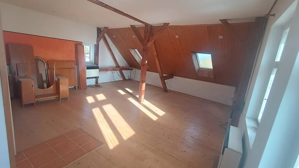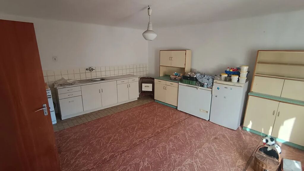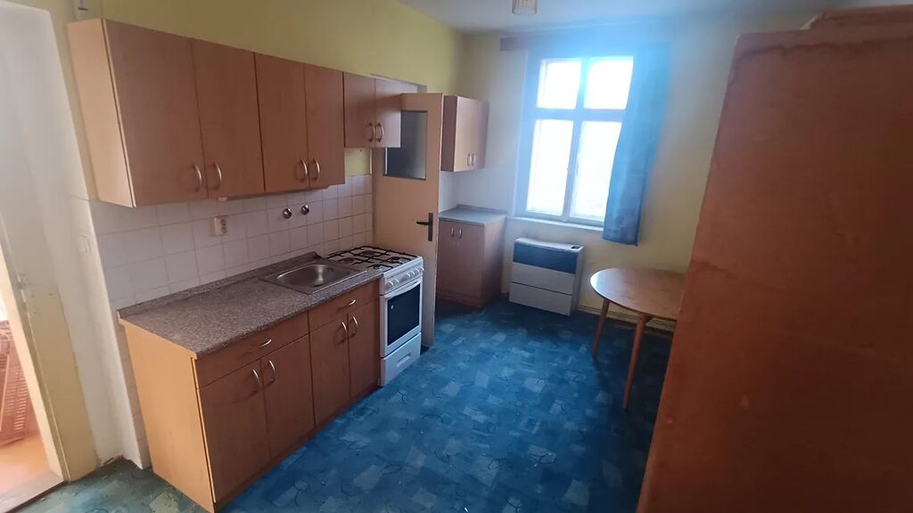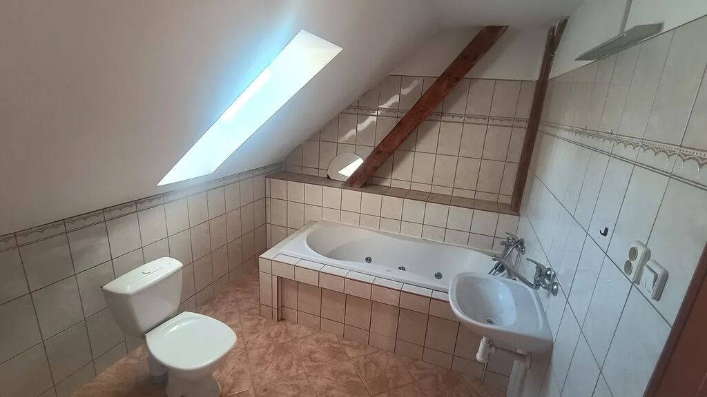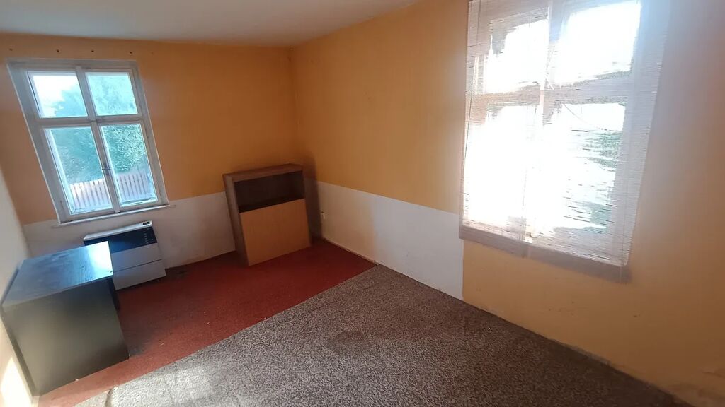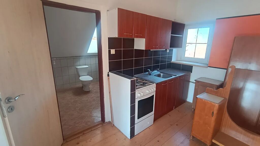 Druhá nemovitost je dvojpatrová - v přízemí se nachází kuchyně, koupelna, ložnice a obývací pokoj. V patře druhém je byt 1kk s vlastní koupelnou. Topení WAW, vytápění plynový kotel, odpady v plastu.