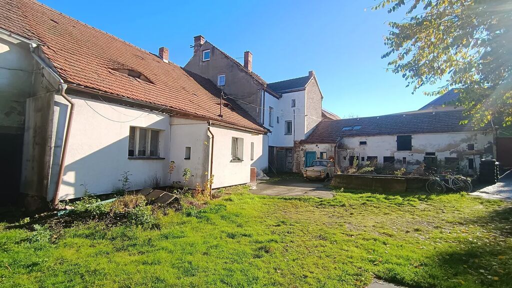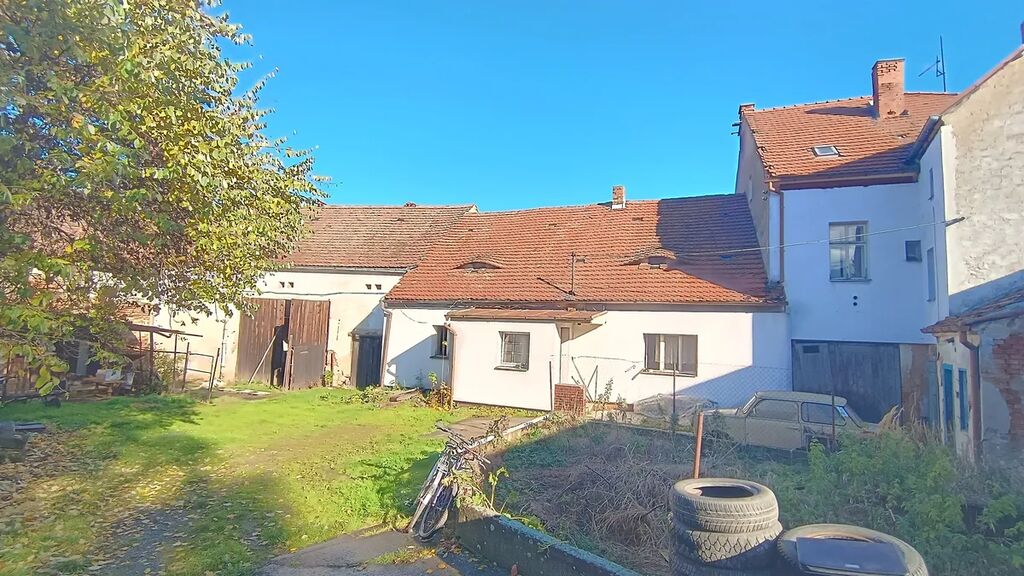 Na pozemku se nachází staré chlívky, garáž a stodola s garáží druhou.