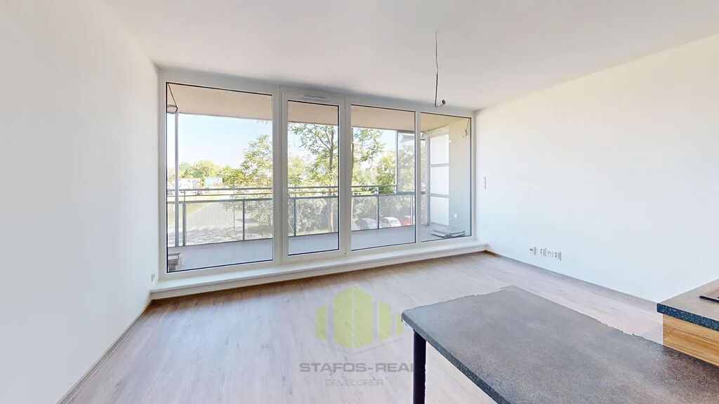 Co se týče samotného bytu, jeho jižní orientace zajišťuje dostatek světla v obývacím pokoji s kuchyňským koutem s přístupem na prostornou lodžii. Navíc, byt disponuje moderním zázemím včetně zádveří, koupelny s WC a šatny. Energetická účinnost bytu je zařazena do třídy B, což značí vysokou úspornost. Na výbavě jsme nešetřili – kvalitní vinylové podlahy, podlahové topení ve vybraných místnostech jsou samozřejmostí. Lednice není součástí.