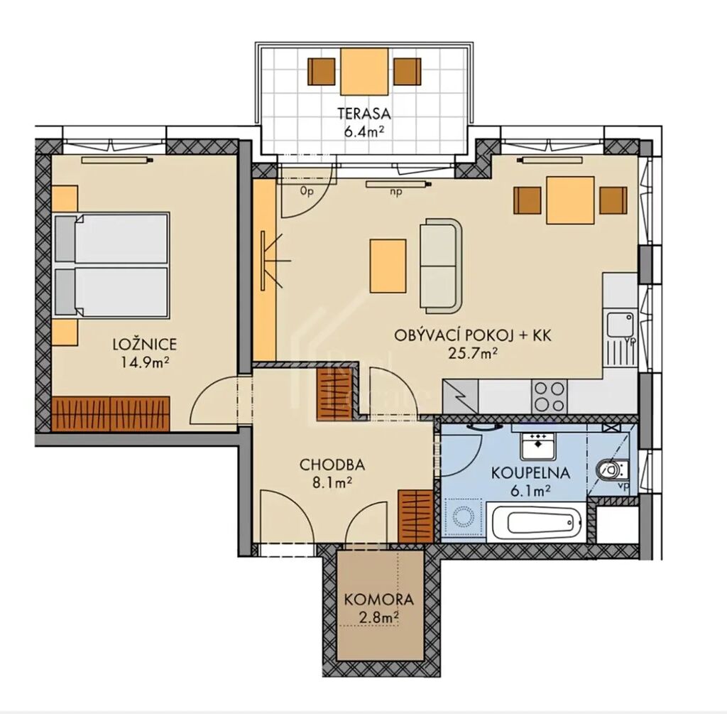 Nabízíme k pronájmu moderní a světlý byt 2+kk o velikosti 64 m², který se nachází v novostavbě. Byt je situován ve 2. patře devítipodlažní budovy s výtahem, což zajišťuje pohodlný a bezbariérový přístup.