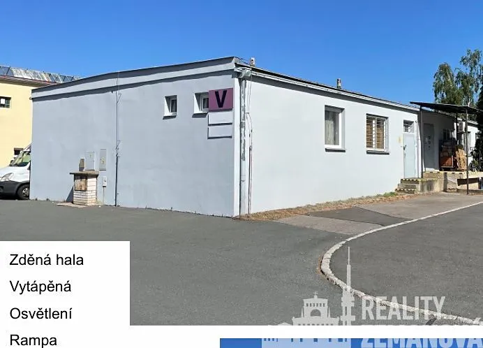K pronájmu zděná hala, výměra 145 m2, vytápěná, osvětlení, rampa.