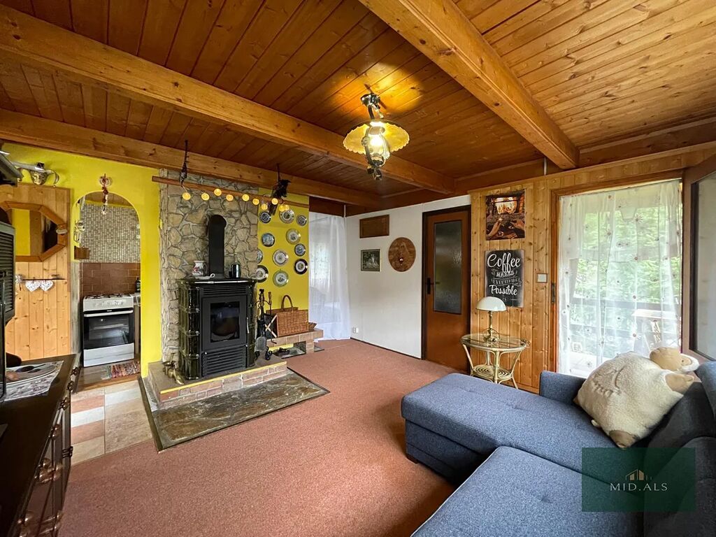 Chata ( zastavěná plocha 46 m2 ) - podsklepená, na betonové podezdívce, dřevěná se zateplením, ve skvělém stavu, střecha plechová, podlahy v patře prkenné, pokryty dlažbou či kobercem.