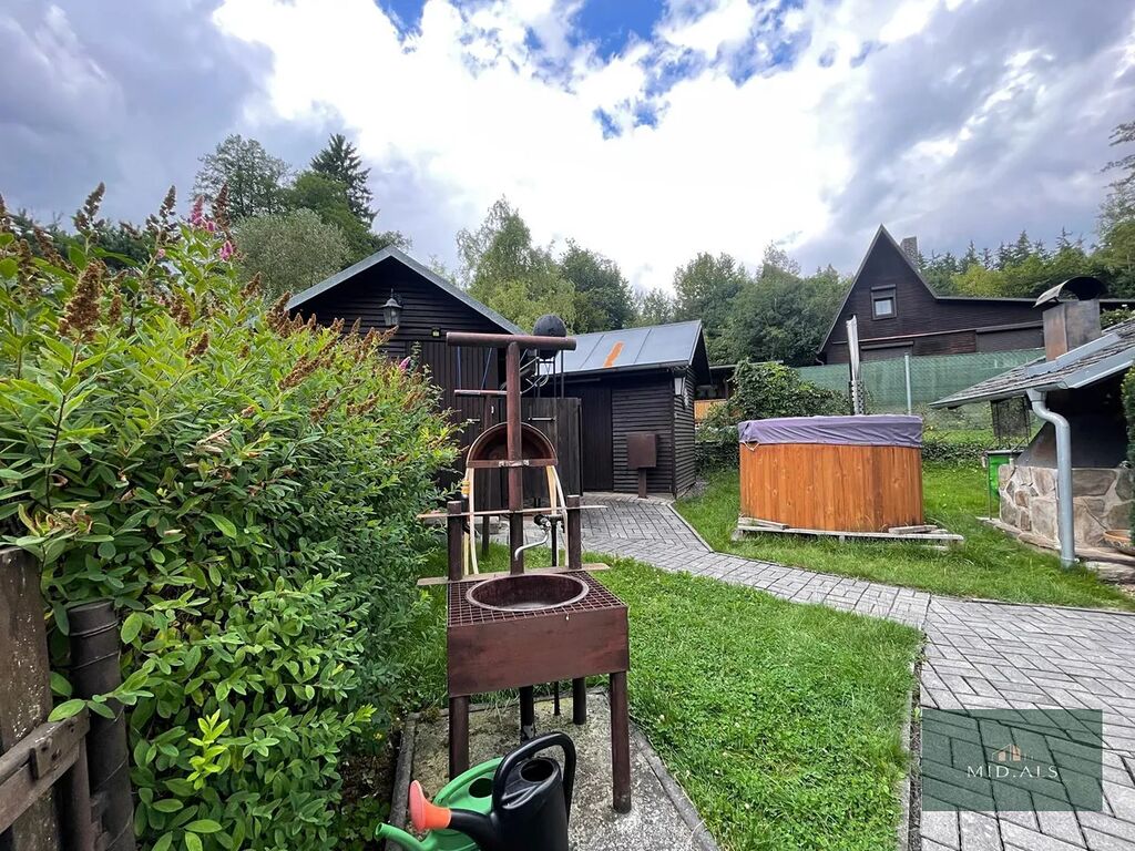 Dále koupací sud, který se dá využít jak ke zchlazení, tak i k ohřátí těla. Dřevěná dílna s veškerým náčiním pro kutily, a vedle samostatná infra sauna pro dvě osoby. Před saunou je instalována venkovní sprcha. O kousek dále je ohniště, okrasné stromy zajišťující soukromí, a stále je zde prostor i na bezvadný bazén, vířivku, nebo cokoli dalšího.