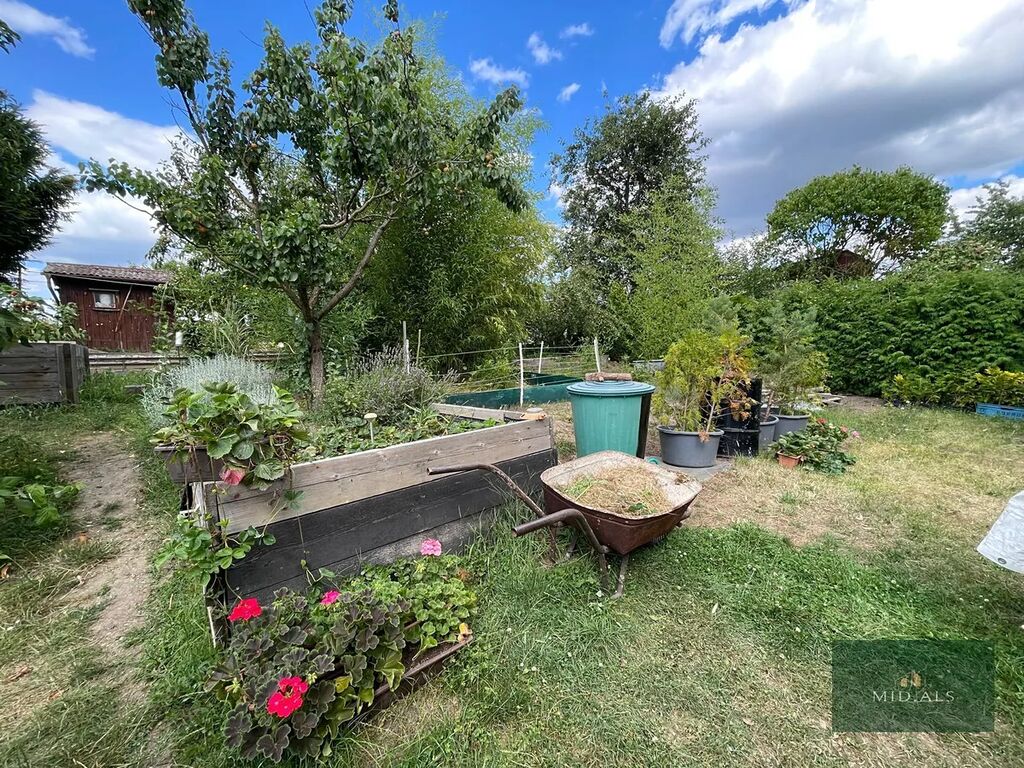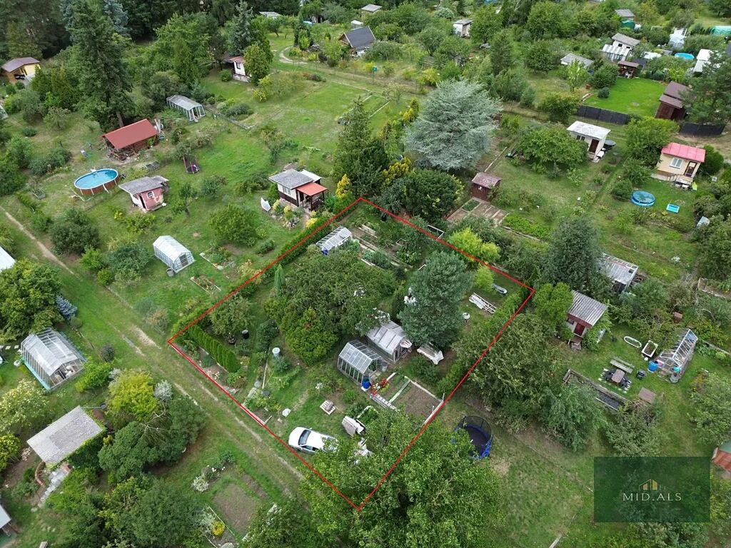 Celková plocha zahrady je krásných 700 m2, a je tvořena dvěma parcelními čísly. Na jedné parcele stojí zděná, podsklepená zahradní chata s přivedenou elektřinou o výměře zastavěné plochy 9 m2.
