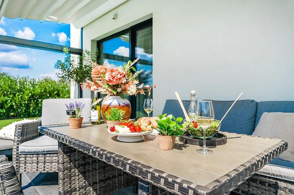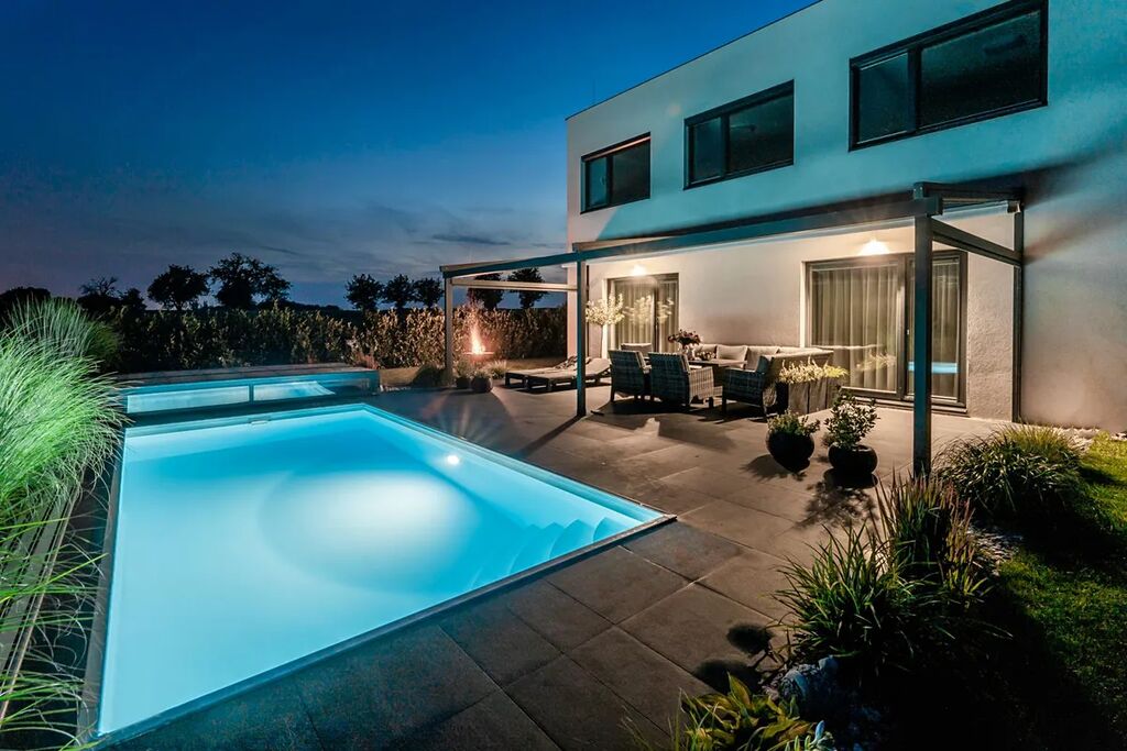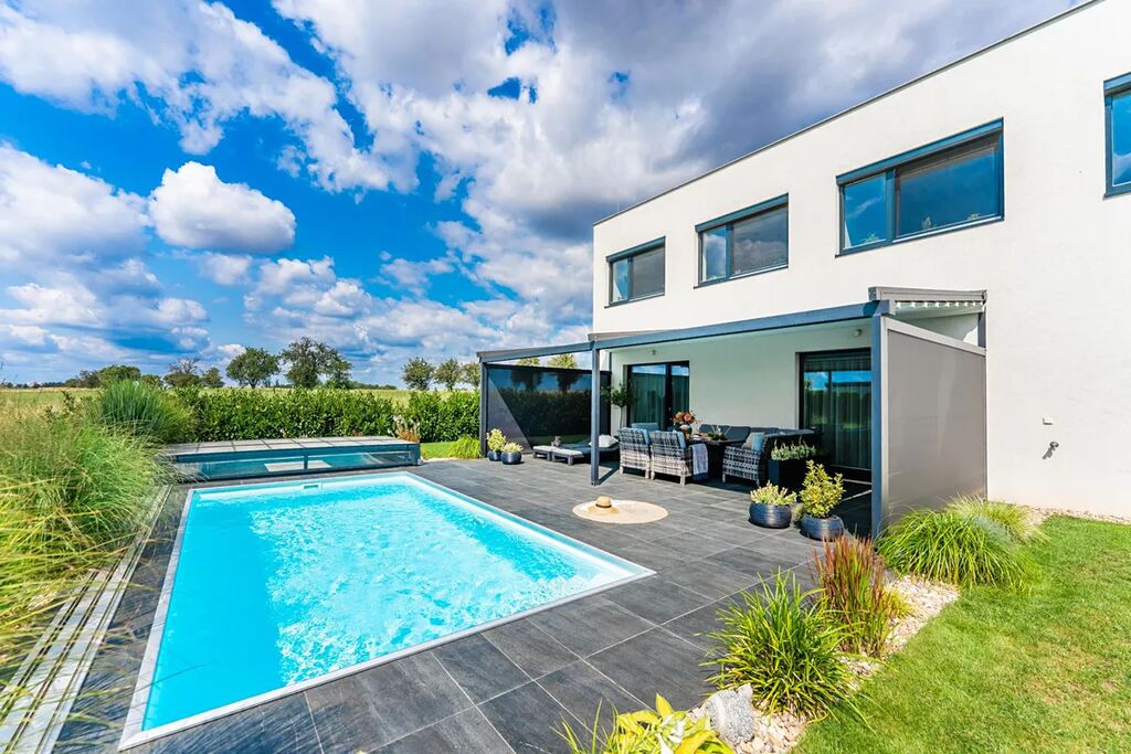 . Dům je dvoupodlažní, zděný, plně zařízený. Dům je vytápěn kondenzačním plynovým kotlem Baxi s integrovaným zásobníkem vody, podlahy jsou třívrstvé dřevěné Ecowood, okna dřevěná s trojskly a vnitřními žaluziemi, v horním patře na oknech venkovní rolety. Dům je vybaven nábytkem v obývacím pokoji sedací souprava Natuzzi, kuchyňský kout s kuchyňskou linkou včetně vestavných spotřebičů, jídelní stůl s židlemi, prostorné vestavné skříně v hale i v patře. V dětském pokoji a chodbě ve 2NP instalována klimatizace Bosch. Dům obklopuje udržovaná zahrada 629m2, vhodná k odpočinku či grilování s přáteli. K příjemnému venkovnímu posezení vybízí terasa vybavená venkovním nábytkem, krytá hliníkovou pergolou SUNTECH 8x4m odolná větru i dešti se zatahovací střechou a boční stínící technikou zipscreen, díky které si užijete léto naplno. Pro sport i relax slouží bazén 6x3 m se slanou vodou, který je vyhříván téměř po celý rok invertorovým čerpadlem Rapid Inverter ric20 8,5Kw s chlazením. Soukromí domu i zahrady zajištuje udržovaný, vzrostlý živý plot.