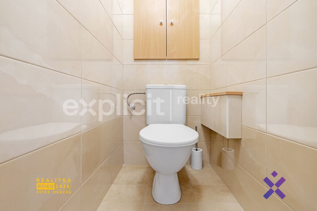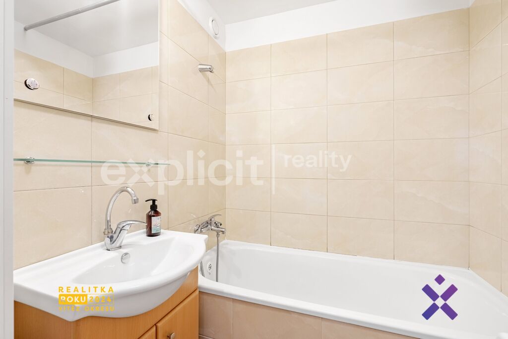 Koupelna je vybavena vanou a toaleta je oddělená. Dispozice bytu je praktická a umožňuje snadné přizpůsobení vlastním potřebám.