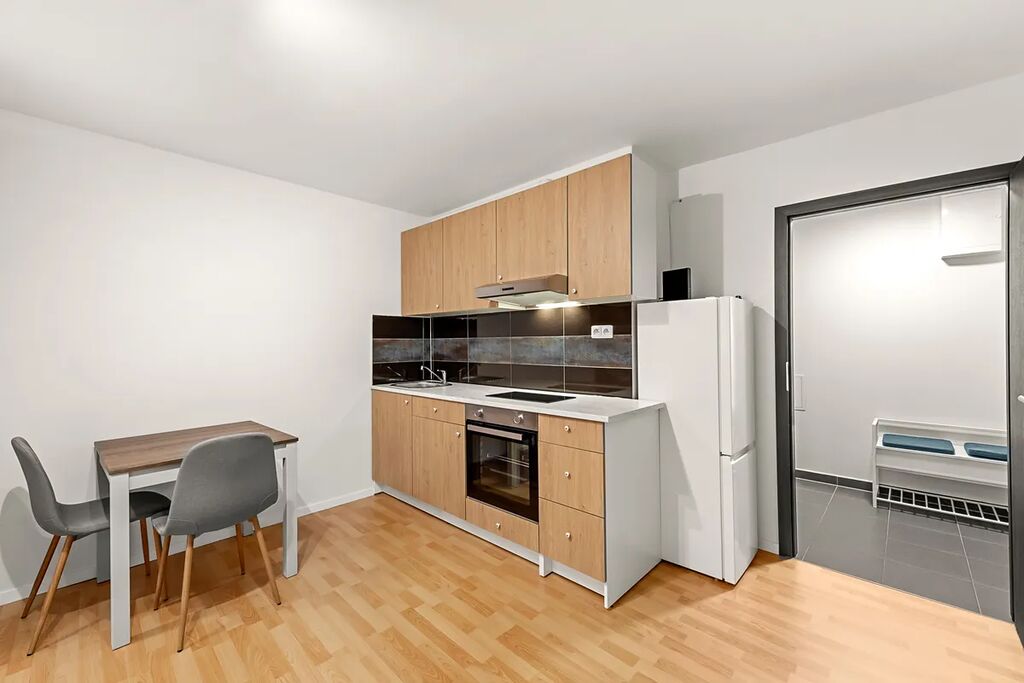 Součástí vybavení je kuchyňská linka včetně spotřebičů, pračka a dostatek úložných prostor.