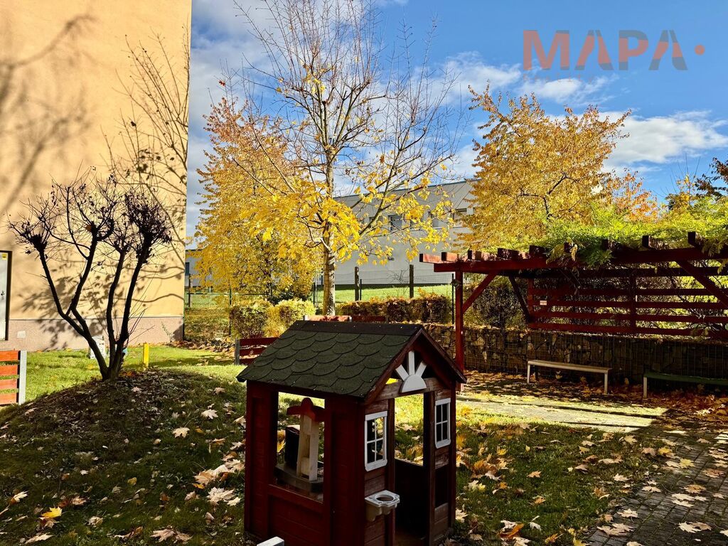 Součástí areálu je společná zahrádka s dětským hřištěm.