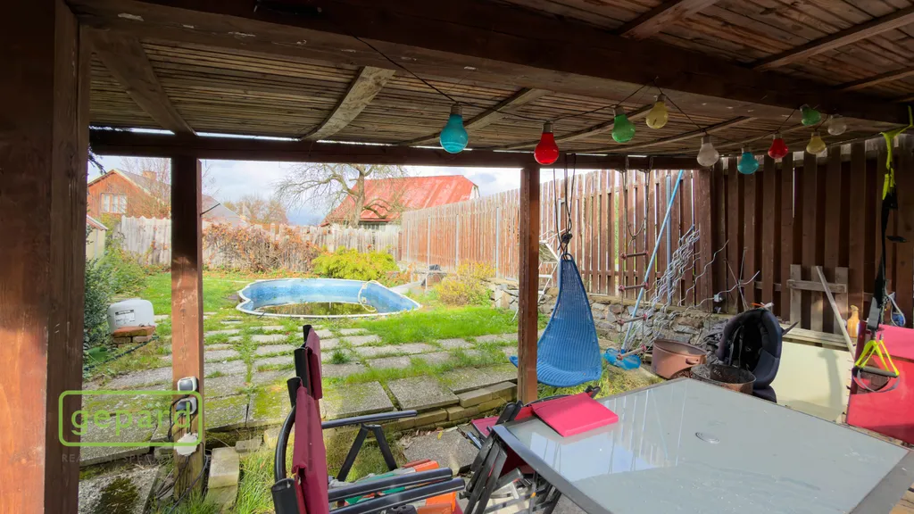 Další stavby: dřevěný přístřešek s posezením, zděné kolny, částečně podsklepená veliká stodola a chátrající bývalý chlév.