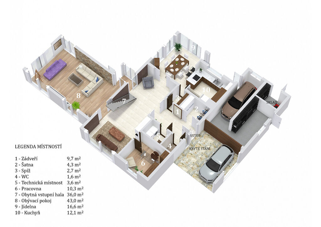 Představujeme vám dům, který je výjimečný svoji skvělou polohou a nadčasovou architekturou. Dům, který vás bude skvěle reprezentovat a zároveň v něm najdete opravdový domov. Jedná se o tradiční cihlovvou stavbu s promyšlenou dispozicí 4+1 a vytápenou garáží. Celková plocha pozemku je 1042 m², vnitřní plocha objektu 248 m².
