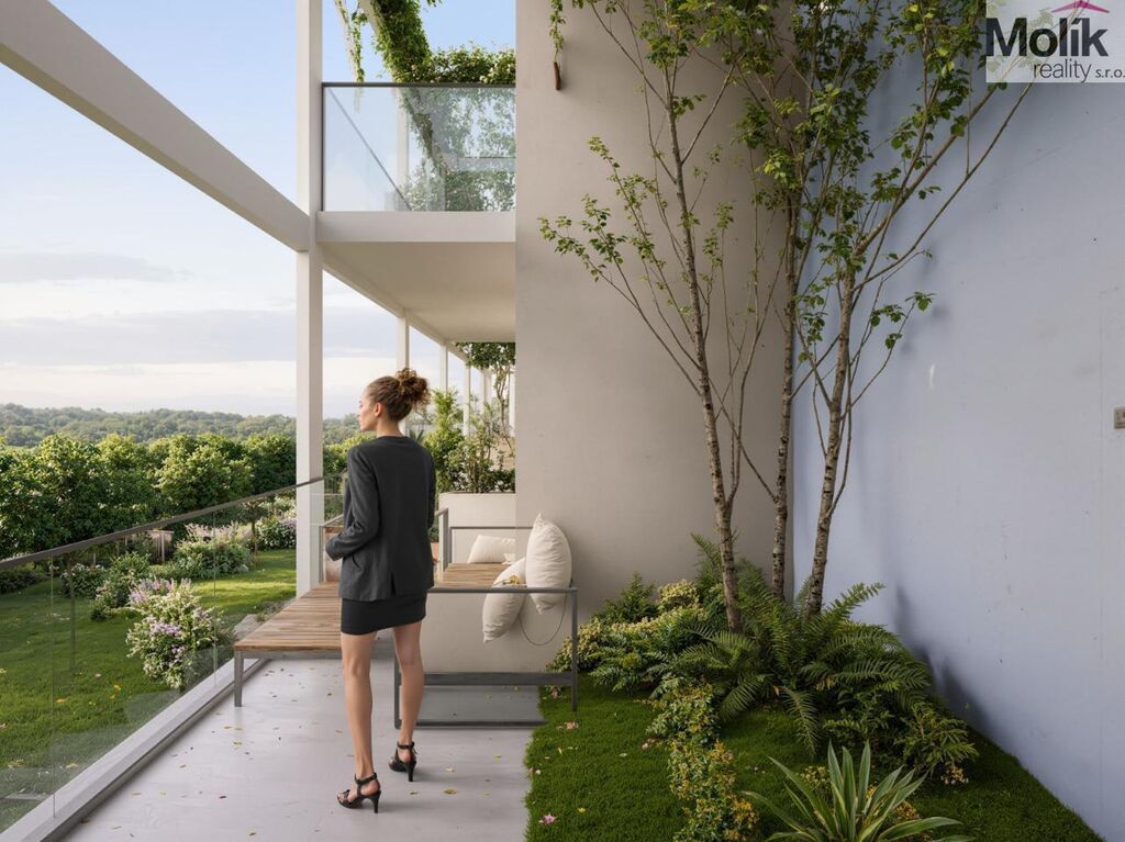 Rezidence vyniká elegantním designem, velkými prosklenými plochami, světlými interiéry a přírodními materiály.