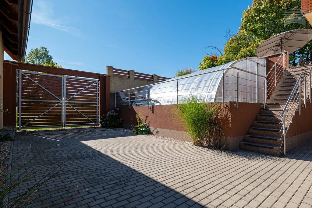 • Terasa: prostorná, se zahradním posezením a grilem, propojená schodištěm se zahradou i bazénem