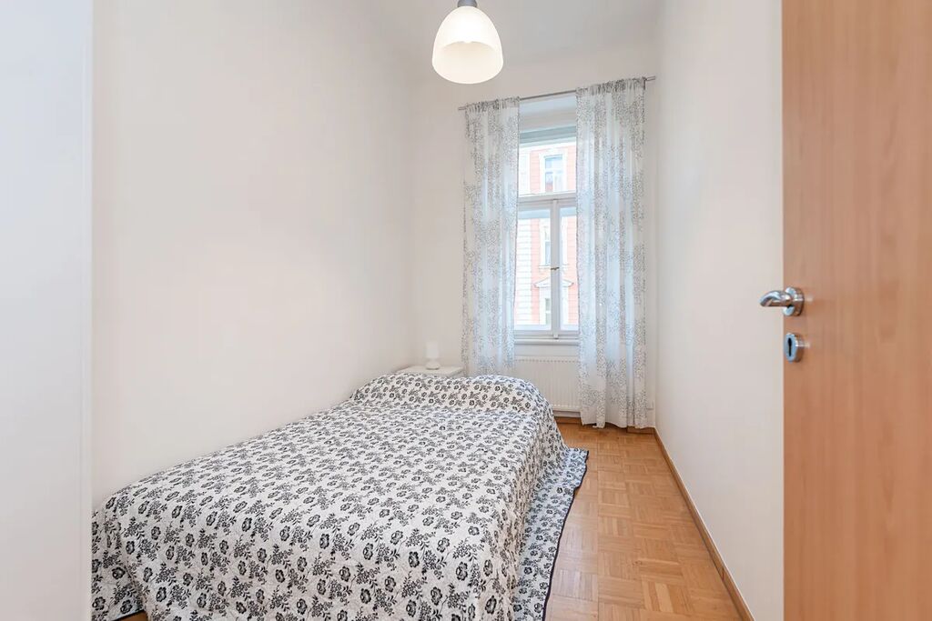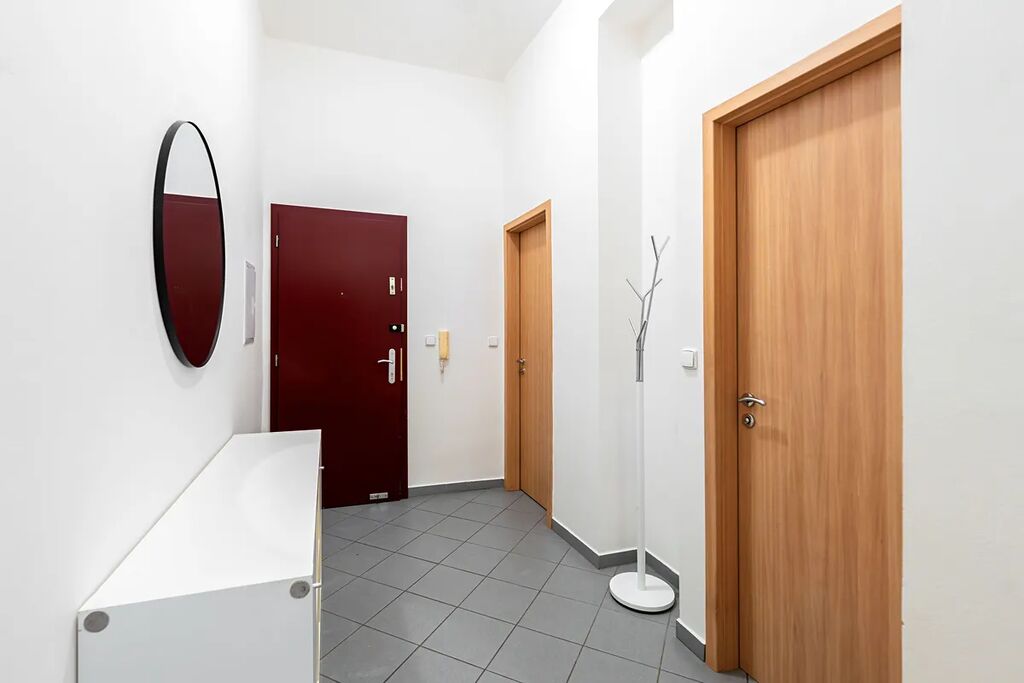 Elegantní zařízený byt 3+kk (2 ložnice, 1 koupelna), o celkové ploše 76m2, je situovaný ve 2.patře, rezidenční budovy s výtahem, poblíž nábřeží Vltavy, na Praze 5 Smíchov.