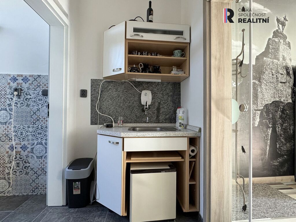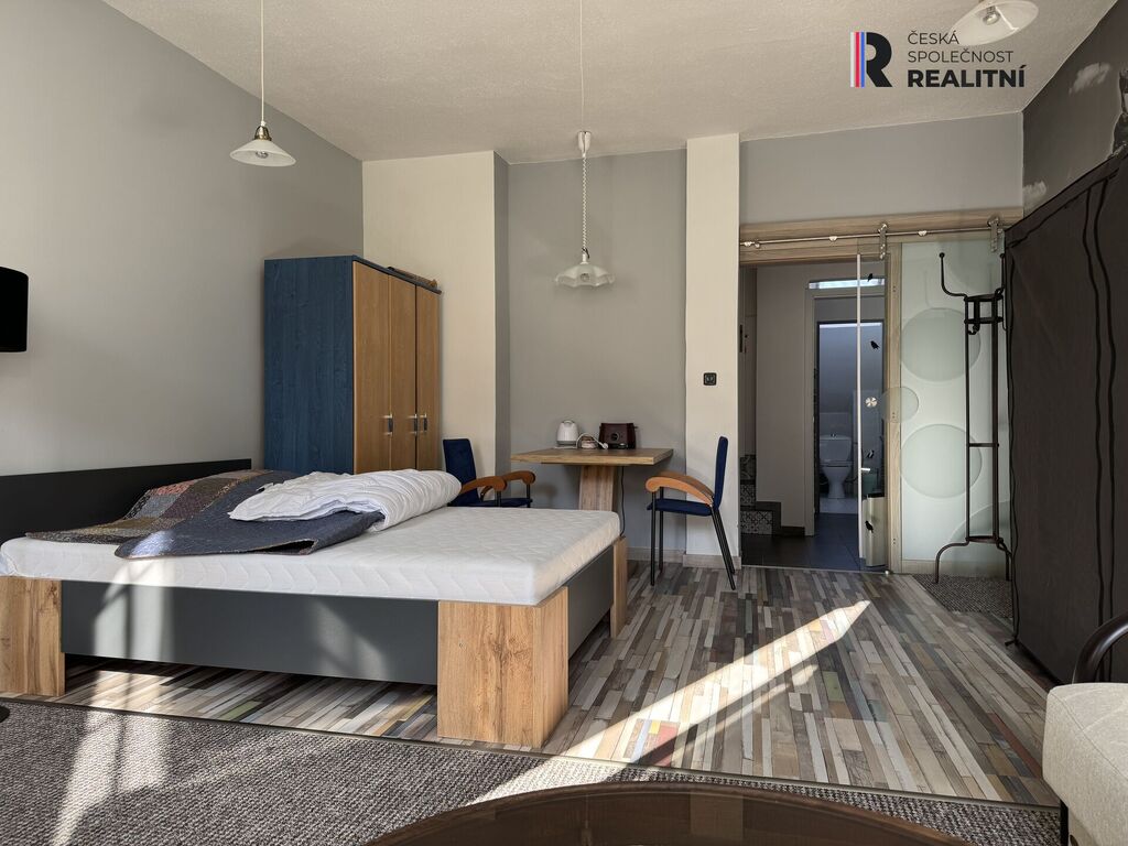 Představuji k pronájmu menší byt v cihlovém domě ulice Moskevská Karlovy Vary. Byt se nachází ve 3. patře a tvoří jej předsíň, zleva vejdeme do koupelny se sprchovým koutem, dále samostatný vstup na WC. V předsíni je menší minikuchyňka s lednicí. Z předsíně po pravé straně vstoupíme do prostorné obytné místnosti. Pokoj je vybavený nábytkem ihned k nastěhování. Parkování před domem.