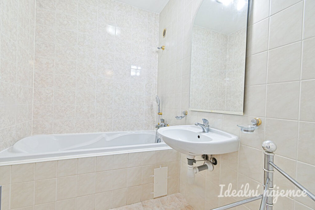 Koupelna disponuje vanou a umyvadlem. Toaleta je oddělena.