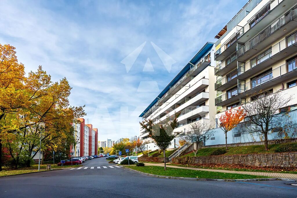 Byt se nachází ve 2.NP s výtahem v moderním domě s recepcí, k bytu náleží prostorná sklepní kóje - 4,66m2, garážové stání - 12m2. Dispozice bytu: vstupní chodba, šatna, koupelna s vanou a toaletou, ložnice se vstupem na terasu a obývací pokoj s kuchyňským koutem a vstupem na terasu. Byt je v udržovaném stavu. Byt je orientován na jižní stranu s výhledem.