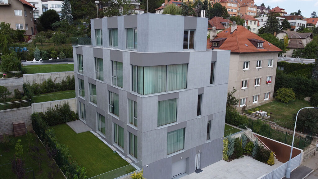 Výjimečnou úroveň standardu v čisté nadčasové architektuře a překrásné zahradní uspořádání objevíte ve dvou stejných bytech 5+kk o rozloze 172 m² se vzrostlými zahradami přes 200 m², a v jednom bytě, který se skládá ze dvou bytů, první byt 5+kk o rozloze 172 a druhý byt 4+kk o rozloze 93 m² s terasou. Byty jsou zařízené kuchyněmi, sedačkami, stoly, židlemi, komodami, ložnicemi, pracovnami atd. Estetické a nadčasové provedení bylo pro nás při zpracování architektonického konceptu klíčové. Tyto základní koncepty moderní architektury 21. století garantují trvalou hodnotu a nadčasovost. Vytvořili jsme výjimečné místo k bydlení, kde bude radost žít a odpočívat.