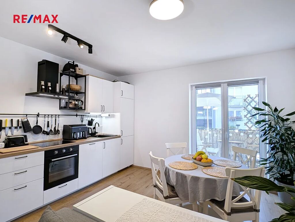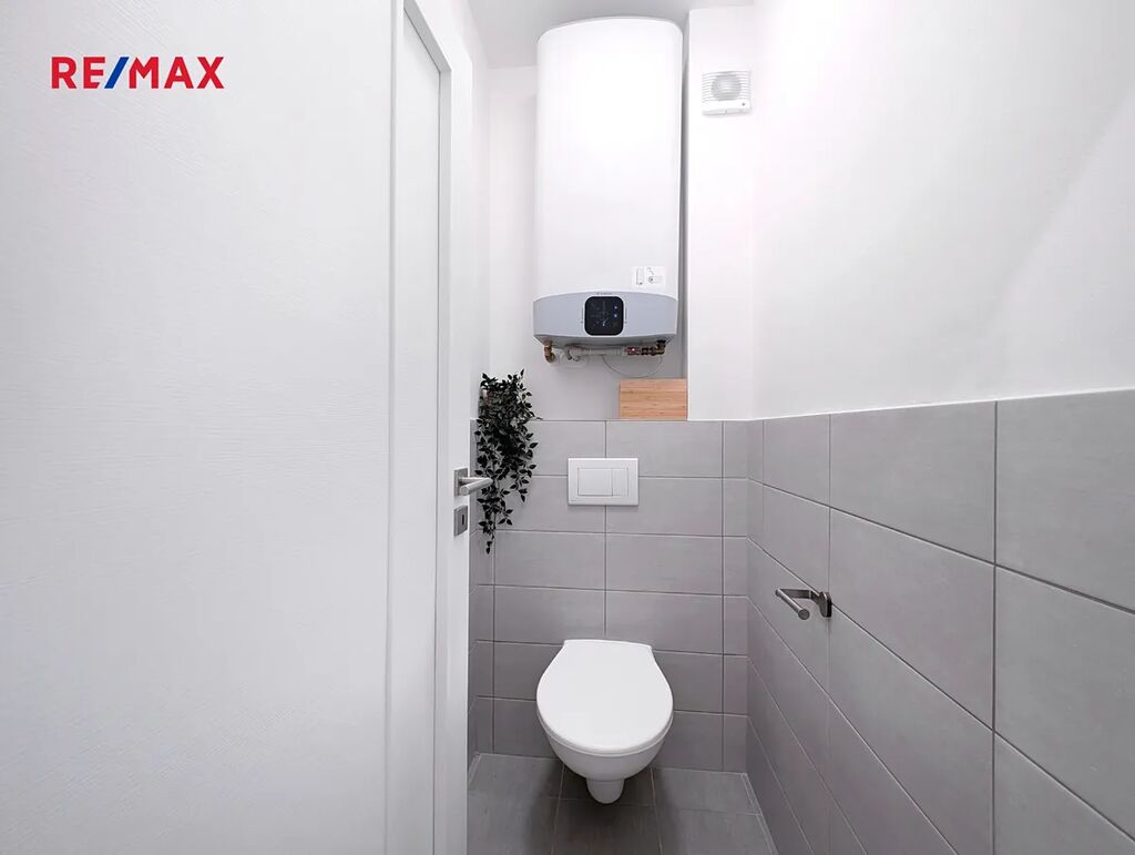 Koupelna je vybavena vanou, toaleta je samostatná. O komfortní teplo se stará podlahové vodní vytápění s elektrickým kotlem, ohřev vody zajišťuje elektrický bojler. Součástí prodeje je moderní kuchyňská linka IKEA s vestavěnými spotřebiči – lednicí, myčkou, troubou, indukční varnou deskou a digestoří. Po dohodě je možné ponechat i další vybavení.