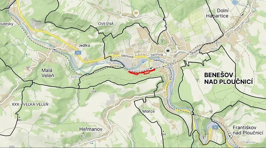 Pozemek p.č. 399/1 v k.ú. Benešov nad Ploučnicí se nachází ve svahovitém terénu, leží na jižní straně kolejiště podél prostoru nádraží v Benešově nad Ploučnicí, těsně za kolejemi, pozemek je lesní, s porostem dřevin.