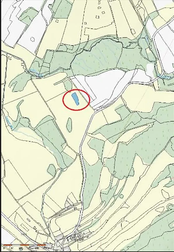 Jedná se malý samostatný pozemek malé výměry (kázek), nacházející se uprostřed trvalého travního porostu ve vlastnictví fyzické osoby.