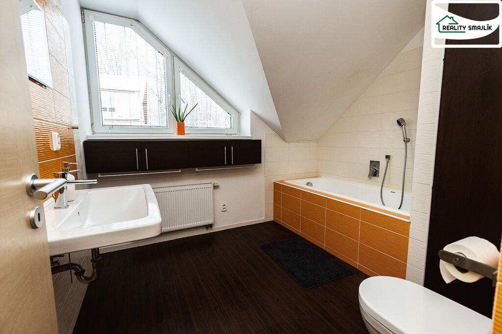 Řadový RD, pozemek 191 m2, ul. Na Nivách, Cheb Exkluzivně nabízíme k pronájmu řadový rodinný dům s rovinatým pozemkem 191 m2 ve velmi atraktivní lokalitě, ul. Na Nivách v Chebu. Dispozičně je dům řešen: přízemí: zádveří, šatna, WC, obývací pokoj s kuchyní, technická místnost, zastřešená terasa, garáž, 1. patro: schodiště + chodba, koupelna + WC, 3x ložnice, podkroví - vybudovaná místnost. Kolaudace v r. 05/2008, v r. 2010 vybudovaná zastřešená terasa, r.2021 výměna nového kondenzačního kotle, panel za kuchyní, nábytek na míru, předsíň, ploty. Kuchyňská linka je vybavená lednicí s mrazákem (r.2022), myčkou, mikrovl. troubou, el. troubou, sklokeramickou varnou deskou. Tento byt nabízíme k dlouhodobému pronájmu. Nájemní smlouva na dobu určitou s možností dalšího prodloužení. Vhodné pro rodinu s dětmi. K uvedenému nájemnému se ještě připočítávají zálohy vodné a stočné a elektřinu a plyn. Majitel si vyhrazuje právo výběru nájemce. Zařízení nábytku zůstává. V dosahu pěší chůze školka, škola, MHD, centrum města. Tento dům je velmi vhodný pro bydlení rodiny s dětmi.