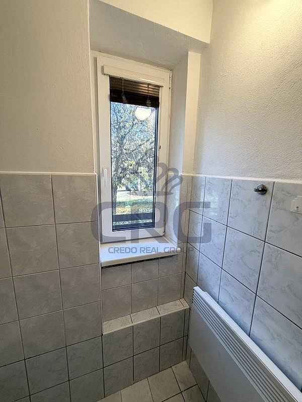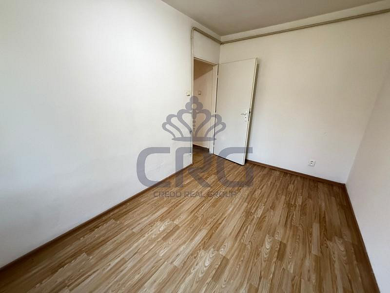 Za vstupními dveřmi se nachází prostorná chodba ve tvaru L o výměře cca 8,64 m², která propojuje všechny místnosti bytu. Součástí chodby je kuchyňská linka vybavená elektronickou troubou, lednicí s mrazákem. Naproti kuchyňské části se nachází prostorná koupelna o výměře cca 5,11 m² s vanou, umyvadlem se zrcadlem a oddělenou toaletou. Z chodby je přístup do dvou dalších obytných místností. Menší pokoj o výměře cca 10,12 m², umístěný naproti vstupním dveřím, je útulný a nabízí příjemný výhled do klidné ulice. Na konci chodby, vlevo, se nachází hlavní obytná místnost o výměře cca 17,15 m², která díky velkým oknům působí světlým a otevřeným dojmem. Z pokoje je výhled na tichý dvorek plný zeleně, což vytváří velmi příjemnou relaxační atmosféru.