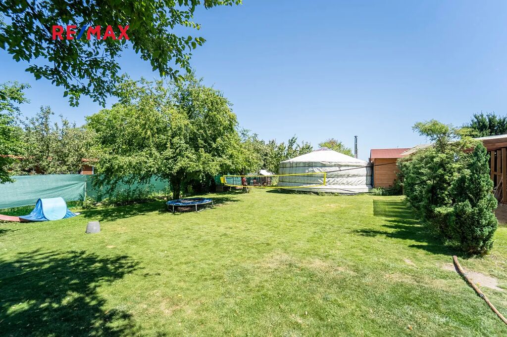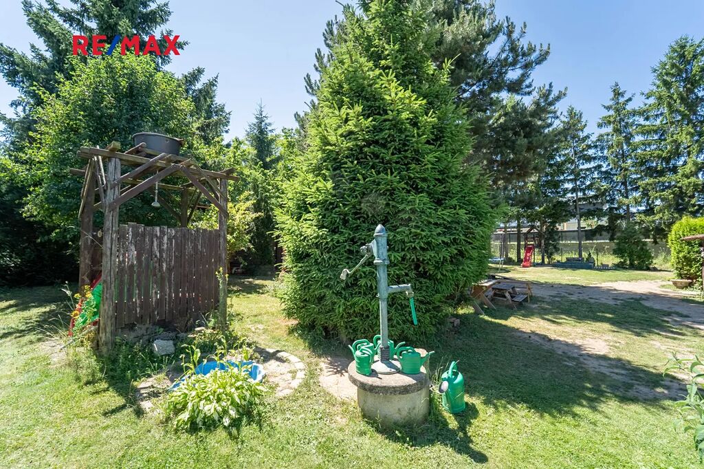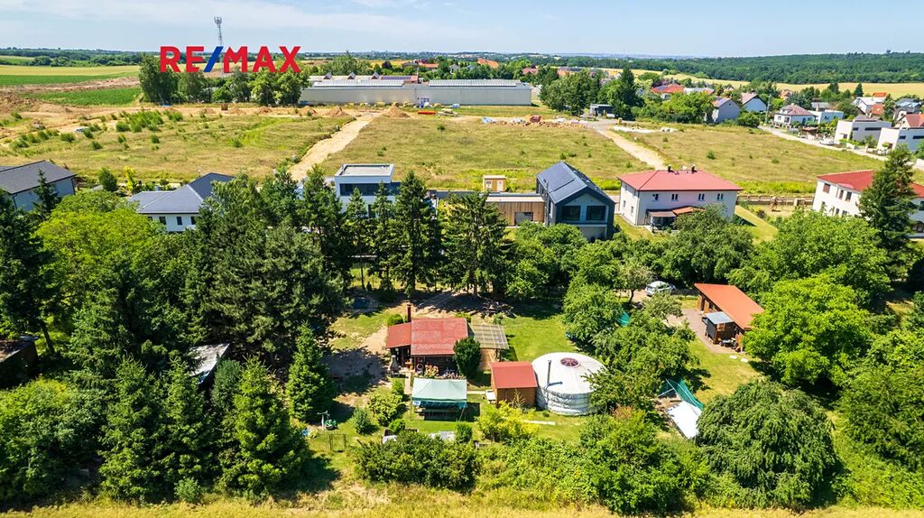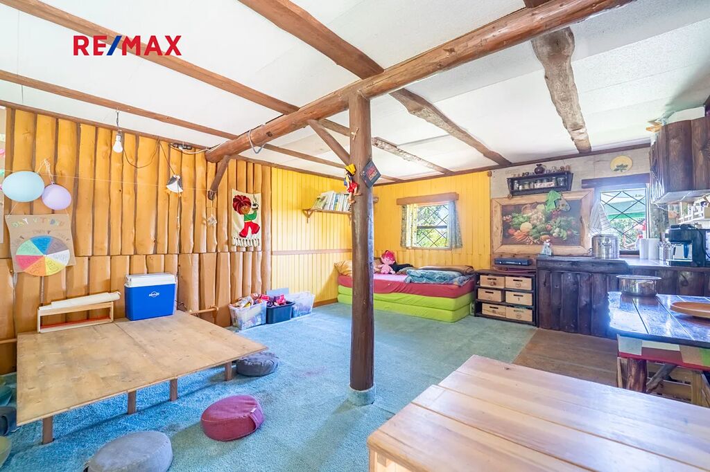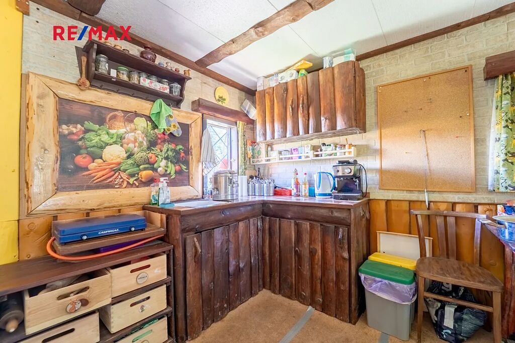 Na pozemku se nachází dřevěný srub s pergolou, kůlna s přístěnkem na dřevo, venkovní sprcha, vrtaná studna o hloubce 40 m s pumpou. Příjemné klima zajišťují vzrostlé stromy. Na pozemku se nacházela lesní školka - zařízení herními prvky bude po dohodě ponecháno nebo odstraněno. K pozemku náleží sloupek připojení EE ve vzdálenosti asi 110 m, nyní je přivedena elektřina ze sousedního severního pozemku s podružným měřením .