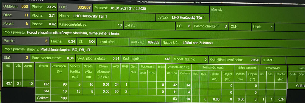 Prodej lesního pozemku v katastrálním území Lštění nad Zubřinou, obec Blížejov, okr. Domažlice. Jedná se o pozemek p.č 461/14 o výměře 4.152 m². Pozemek je situován na rovině s přístupem po lesní cestě až k pozemku. Na většině plochy pozemku se nachází lesní porost smrku a břízy ve věku 25 let a na menší ploše se nachází lesní porost borovice a smrku ve věku 95 let v celkové zásobě dle LHO 19 m3. Na pozemku není třeba žádných nutných těžebních ani pěstebních zásahů. Pozemek je vhodný pro stavbu účelového lesního zařízení sloužícího lesu a zvěři. Pozemek sousedí s lesním majetkem LČR. Foto je aktuální. List vlastnictví č. 542. Informace na tel. nebo e-mailu.