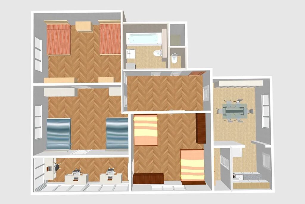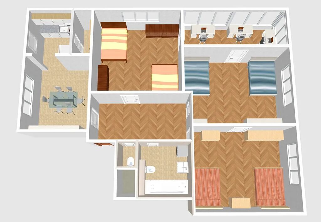 Byt je díky své dispozici vhodný pro rodinu nebo jako spolubydlení.