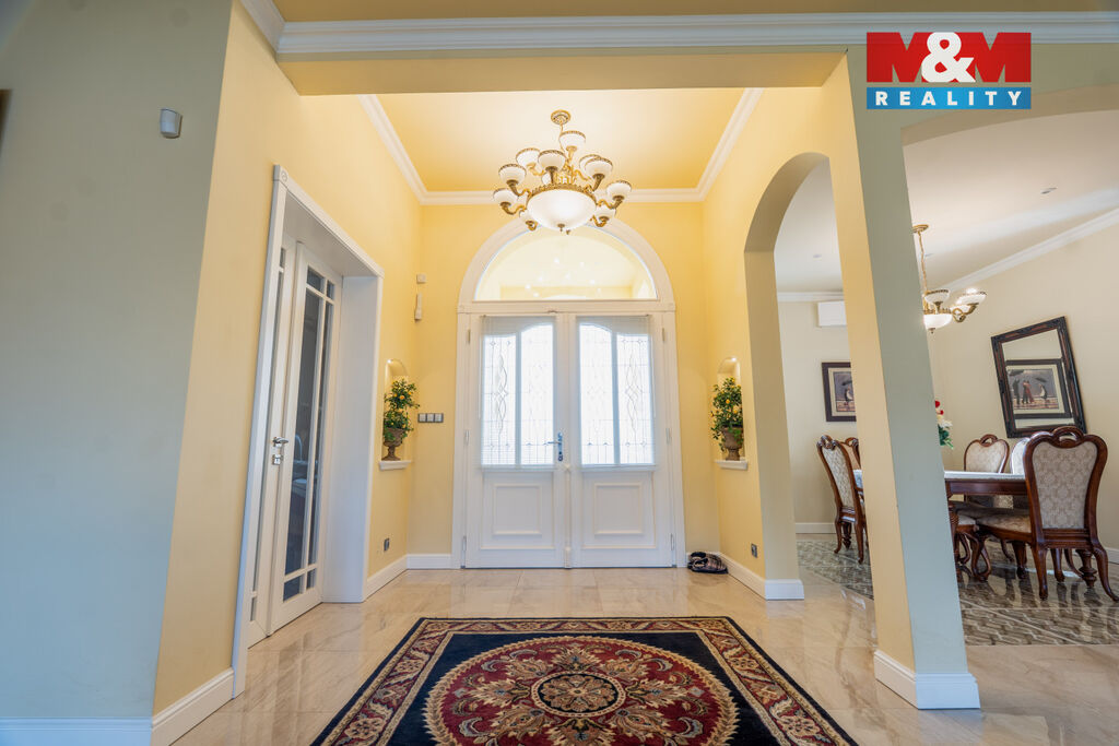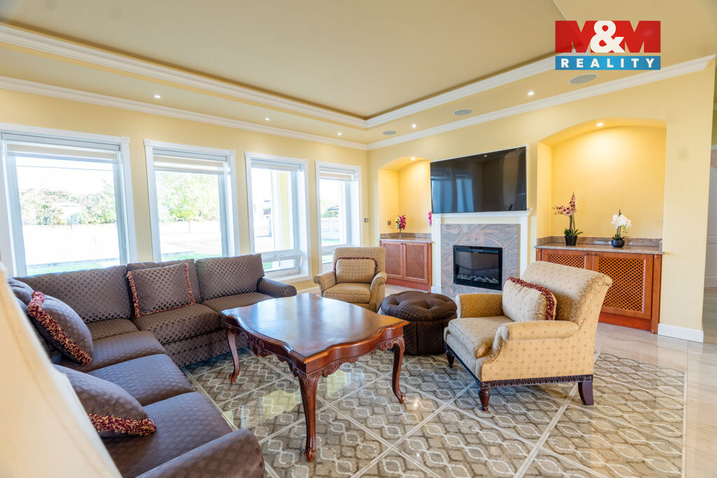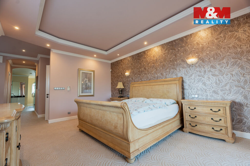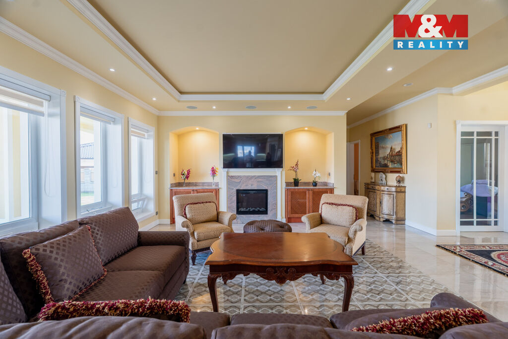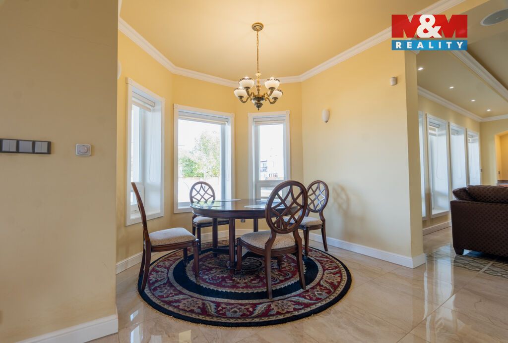 Hledáte dům, který spojuje eleganci, pohodlí a výjimečné místo k životu pouze 40 minut jízdy od Prahy? Tento jedinečný rodinný dům v americkém stylu o dispozici 6+KK s užitnou plochou 429 m² stojí na pozemku o rozloze 1 694 m² v jedné z nejatraktivnější části Loun s dechberoucím výhledem na České středohoří. Dům vás osloví velkorysým prostorem, nadčasovým designem a důrazem na detail. Nabízí tři pokoje pro hosty, každý s vlastní šatnou a koupelnou, obývací pokoj s barem a jídelním koutem, prostornou kuchyň se spíží, pracovnu, samostatné WC a hlavní ložnici s luxusní koupelnou. Na zahradě se můžete vykoupat v bazénu se slanou vodou. Součástí domu jsou dvě garáže, podlahové vytápění, klimatizace, centrální ozvučení a kamerový systém. Přijďte se přesvědčit o výjimečnosti tohoto domu a domluvte si prohlídku, během níž vám představíme vše, co tento domov nabízí.