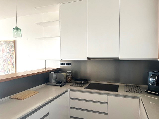 Nemovitost byla již při výstavbě řešena podle požadavků majitele, který kladl důraz na každý detail a pečlivě dbal na vybrané materiály. Z toho důvodu také při návrhu bytu využil služeb architekta. Ten vnesl do bytu elegantní styl, který podtrhuje nábytek na míru v celém interiéru.