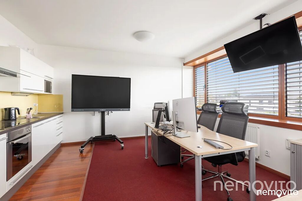 Pronájem bytu či kanceláře 2+kk s plochou 56 m2 ve třetím podlaží budovy, ke kterému je možnost přičlenit i velký sklad s garáží (16,5 m2, není aktuálně součástí ceny) a až 5 možných parkovacích míst v uzavřeném areálu. Byt je možné využívat také jako kancelář - majitel se komerčnímu využití nebrání. Prostor je nabízen bez vybavení, tedy prázdný, a čerstvě vymalovaný.