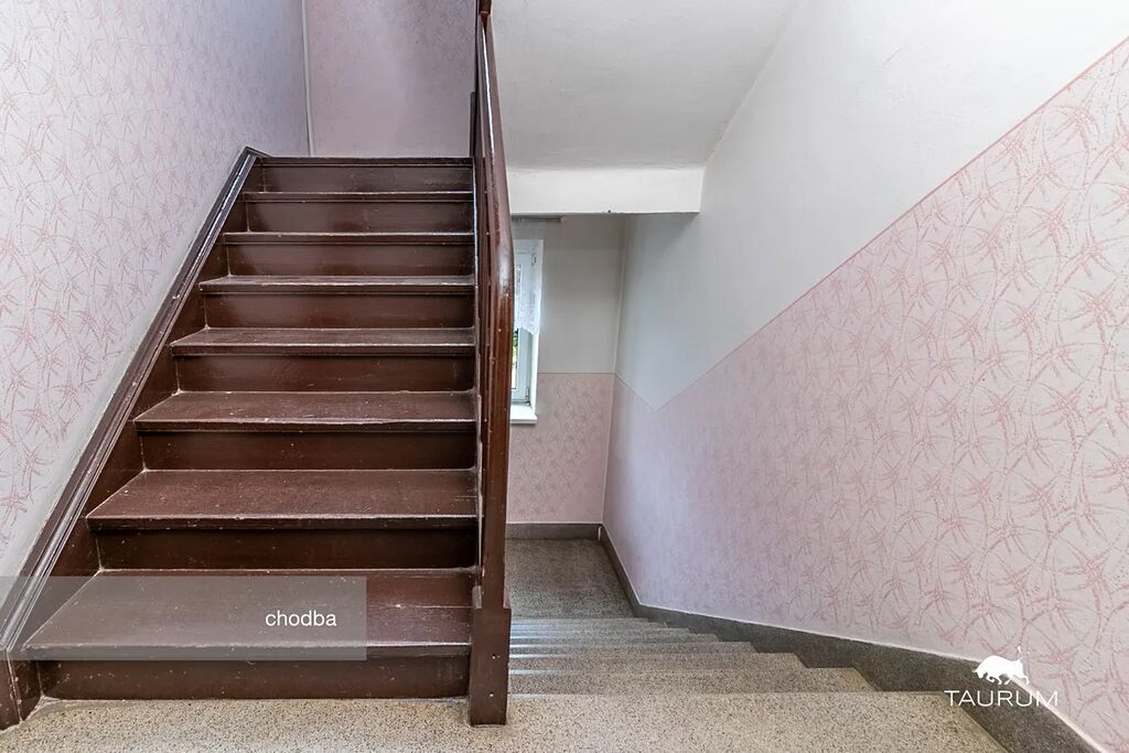 Byt o dispozici 1+1 má podlahovou plochu 35 m² a nachází se v 2. nadzemním podlaží v cihlovém domě a je v původním stavu vhodném k rekonstrukci. Součástí dispozice je jedna obytná místnost, kuchyně, předsíň a koupelna se zděným jádrem a WC. Na podlahách je kombinace lina, koberce a dlažby. K bytu náleží sklep o výměře přibližně 7 m² a půdách komora přibližně 3 m².