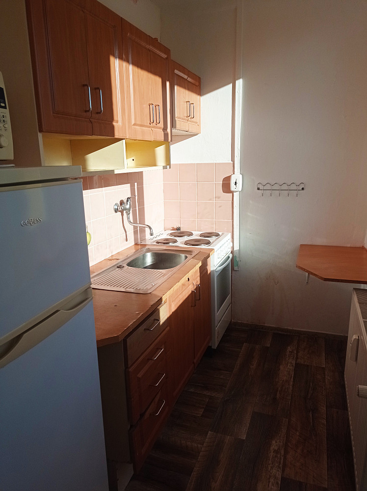 Dispozice bytu zahrnuje prostorný obývací pokoj, kuchyň , koupelnu a WC. Byt je v dobrém technickém stavu, v bytě lednice a pračka, připravený pro nového nájemníka bez nutnosti dalších investic.