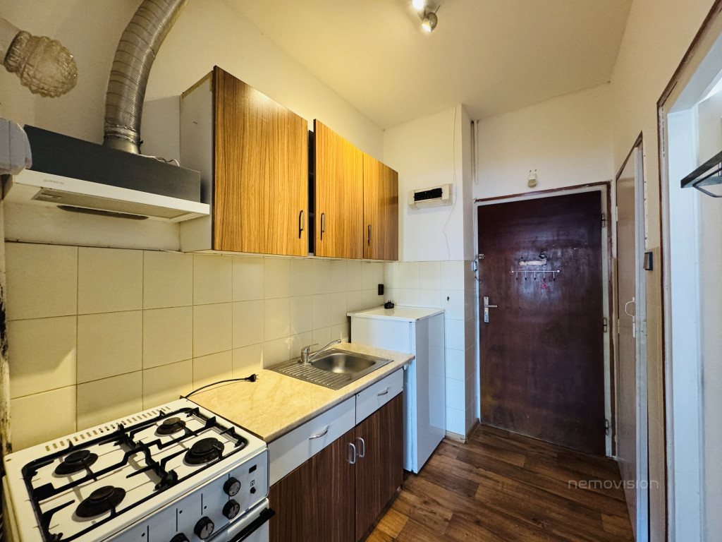 Hned za vstupem se nachází kuchyně, ze které se vchází do ložnice a koupelny. Toaleta je samostatně. Nábytek, který je na fotkách nebude součástí nájmu.