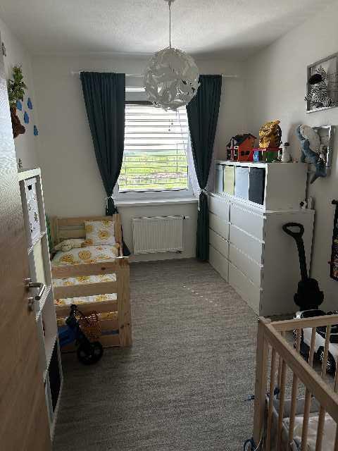 Předsíň 14 m2, komora 3 m2, samostatné WC s umyvadlem 2 m2, koupelna se sprchovým koutem umyvadlem přípojkou na pračku a kotlem 4 m2, kuchyně s obývacím pokojem a se vstupem na lodžii 29 m2, ložnice 14 m2, dětský pokoj 10 m2, dětský pokoj 10 m2, lodžie 8 m2, sklep 2 m2, kryté garážové stání (není v ceně bytu).
